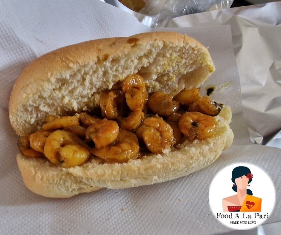 Broodje Garnalen Kerrie met zuurgoed en/of sambal.